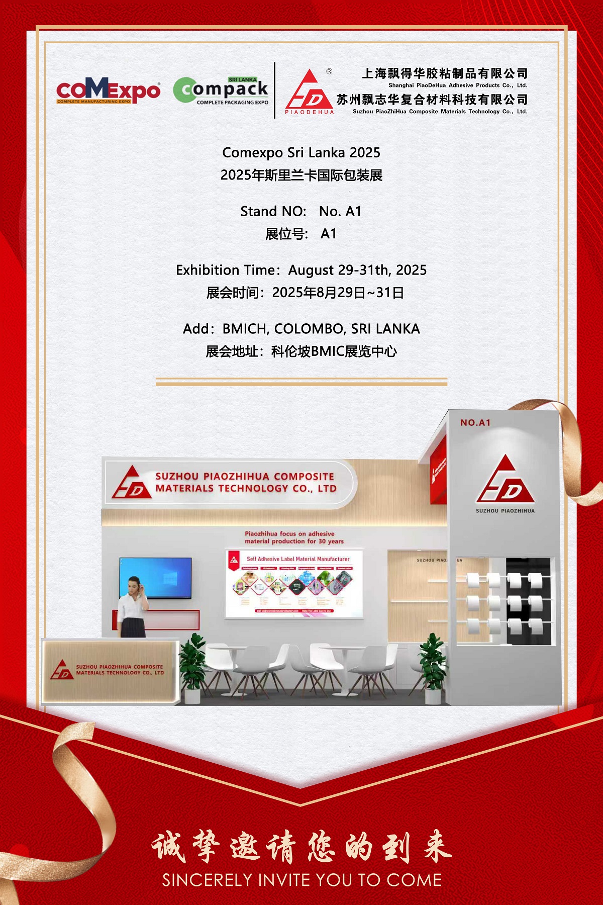 Piaozhihua s potešením oznamuje svoju účasť na Comexpo Srí Lanke 2025, jednej z najvplyvnejších medzinárodných obalových výstav v južnej Ázii, ktorá sa koná od 29. do 31. augusta 2025 v BMich v Colombo, Sri Lanka. Ako popredný výrobca adhéznych materiálov s viac ako 30-ročnou odbornosťou predstaví Piaozhihua svoje inovatívne riešenia samolepiaceho štítkov a pokročilé kompozitné materiály na stánku č. A1. Cieľom spoločnosti je posilniť svoju prítomnosť na juhoázijskom trhu a posilniť hlbšiu spoluprácu s priemyselnými partnermi.